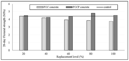 28-day Flexural strength of POC and POCP concrete.