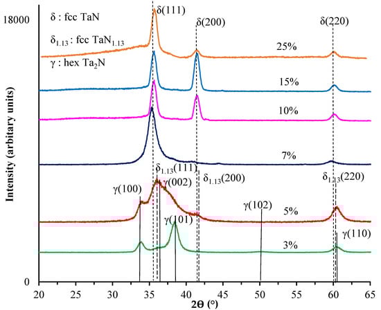 - Terao, N. Structure of tantalum nitrides. Jpn. J. Appl. Phys. 1971, 10, 248. [Google Scholar] [CrossRef]