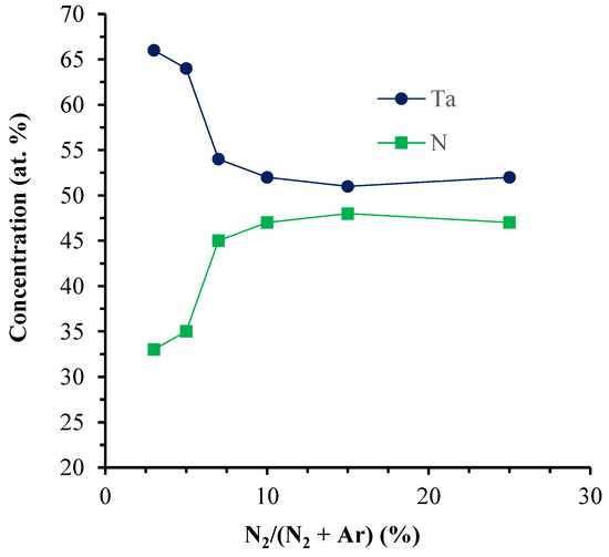 - Lee, W.H.; Lin, J.C.; Lee, C. Characterization of tantalum nitride films deposited by reactive sputtering of Ta in N2/Ar gas mixtures. Mater. Chem. Phys. 2001, 68, 266–271. [Google Scholar] [CrossRef]