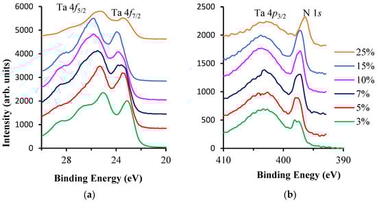 - Sasaki, K.; Noya, A.; Umezawa, T. Stoichiometry of Ta–N Film and Its Application for Diffusion Barrier in the Al3Ta/Ta–N/Si Contact System. Jpn. J. Appl. Phys. 1990, 29, 1043. [Google Scholar] [CrossRef]