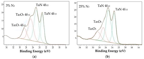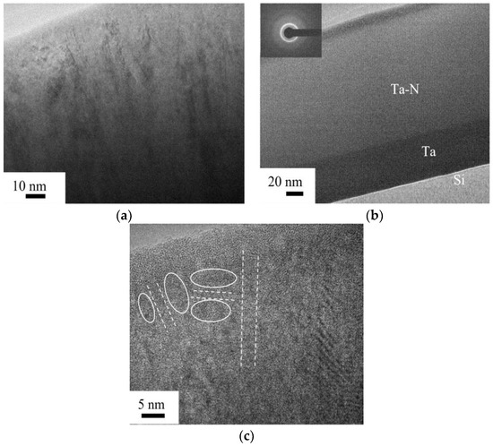 - Chang, C.C.; Jeng, J.S.; Chen, J.S. Microstructural and electrical characteristics of reactively sputtered Ta–N thin films. Thin Solid Films 2002, 413, 46–51. [Google Scholar] [CrossRef]
