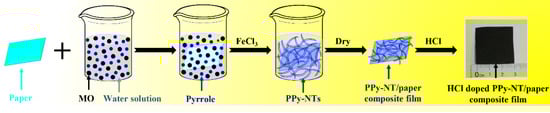 2.2. Preparation of the Flexible PPy–NT/Paper Composite Films