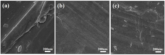 FESEM images of (a) bare copper, (b) GO coated copper, and (c) GO coated on copper and reduced by sodium borohydride (NaBH4).