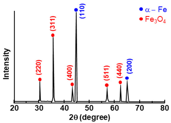 Figure 4 shows the results of the XRD of the steel surface after dipping for 5 s at 773 °C, confirming that the oxide layer was comprised of Fe3O4. This oxide layer is the most thermodynamically stable Fe-based oxide at temperatures below the dipping temperature. When the boron steel was heated in an electric furnace maintained at 773 °C for 10 s in air, no oxide layer was formed. However, when the boron steel was dipped into the Al-7 wt.% Mn molten metal, an oxide layer formed. Thus, the Fe3O4 formed by the reaction of the steel surface with oxygen in the molten metal.