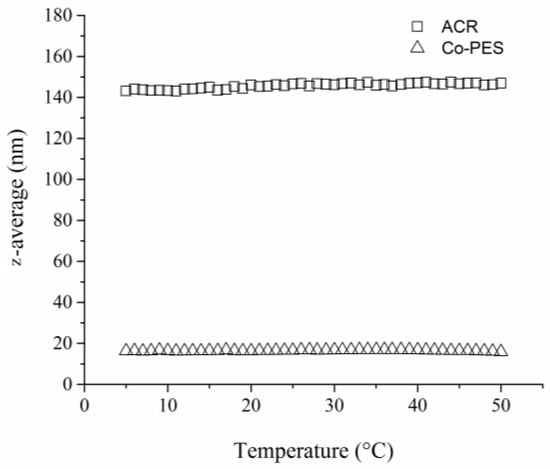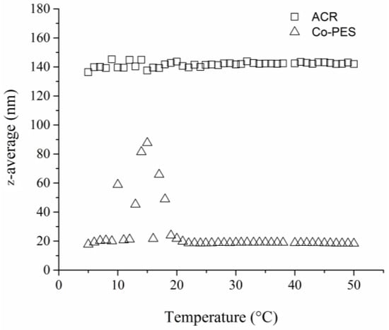 z-average temperature dependence of modified ACR dispersion (squares) and Co-PES dispersion (triangles).