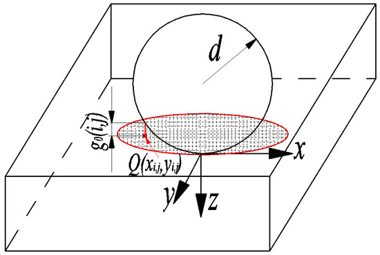The initial gap g0(i,j) can be described as the distance between the central point Q and the outer surface of the ball in the z direction: