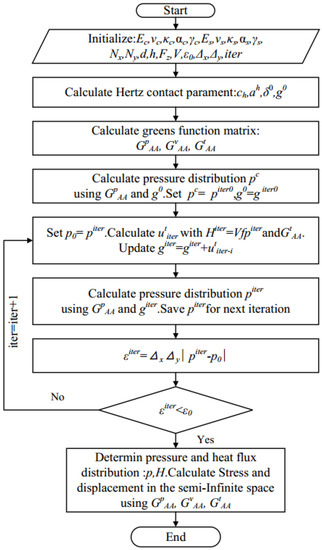 Figure 6 is a flowchart for solving thermoelastic contact problem of coated solids. The solving procedure can be conducted as follows: