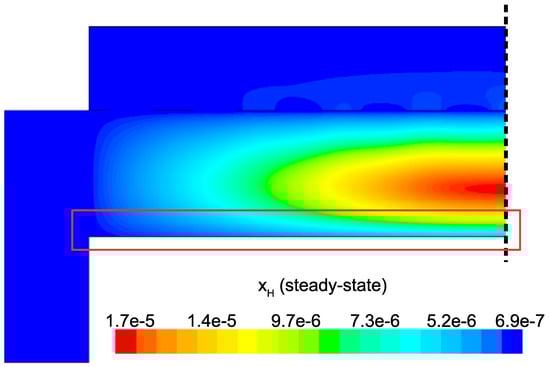 Steady-state profile of  at T = 475 K and P = 1 Torr.