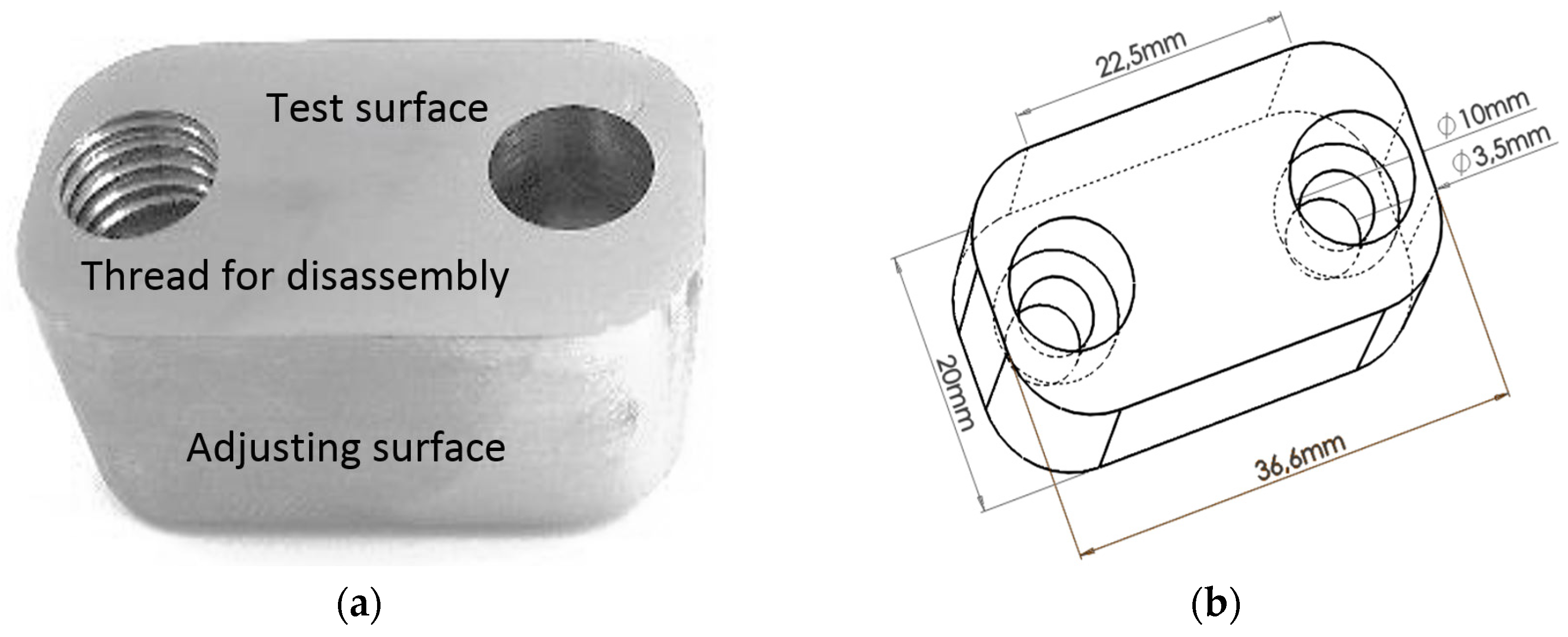 Industrial sample shape and corresponding dimensions: (a) view of the inserts used in the moulds and (b) corresponding dimensions.