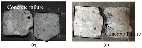 Failure mode depending on the surface treatment method: (a) sprayed, (b) abraded (c) sealed (A), and (d) sealed (B).