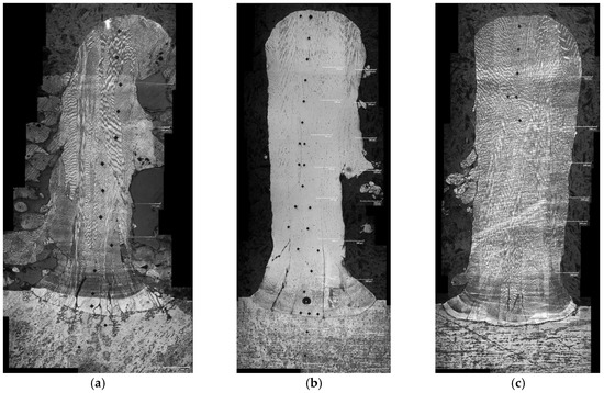 Images of transverse sections of the deposit and the substrate obtained from all the three powder mixtures are shown in Figure 3. A minimum of 6 mm height was deposited using each powder mixture.