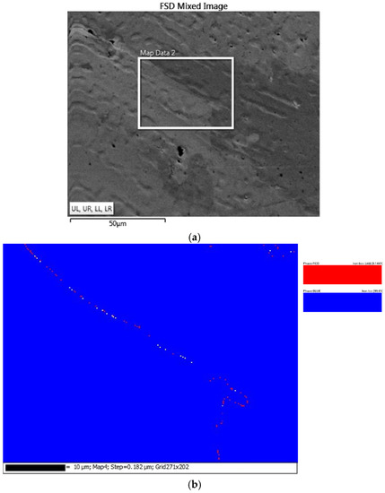 3.4. EBSD and EDS Analyses