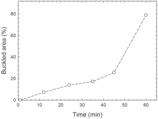 Buckled film area (in percent of the total area) versus exposure time.