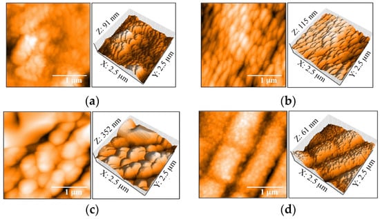 Surface roughness values obtained from AFM images are shown in Table 2. Sa and Ra for 1000 °C-2 h were significantly higher than those for 600 °C-2 h, 800 °C-2 h, and 600 °C-4 h (p < 0.05).