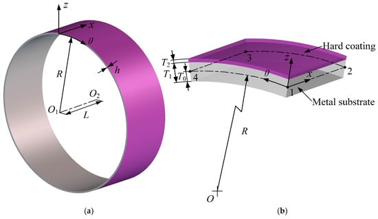 where T1 and T2 are the thickness of metal substrate and hard-coating, respectively (see Figure 1b). T0 is the distance from the middle surface to the inner surface, defined by: