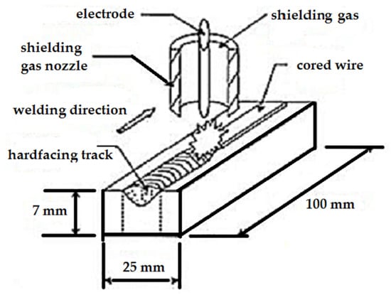 Both metallic and ceramic powders can be utilized to form a composite onto a metallic substrate, and there are two ways to mix these powders into the substrate surface: Either by directly applying the powder onto the substrate or by using powder-cored filler wires [,,,,,,,,].