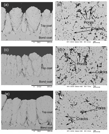 - Guo, H.; Vaßen, R.; Stöver, D. Atmospheric plasma sprayed thick thermal barrier coatings with high segmentation crack density. Surf. Coat. Technol. 2004, 186, 353–363. [Google Scholar] [CrossRef]