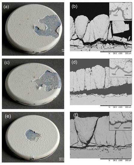 - Vaßen, R.; Giesen, S.; Stöver, D. Lifetime of plasma-sprayed thermal barrier coatings: Comparison of numerical and experimental results. J. Therm. Spray Technol. 2009, 18, 835–845. [Google Scholar] [CrossRef]
