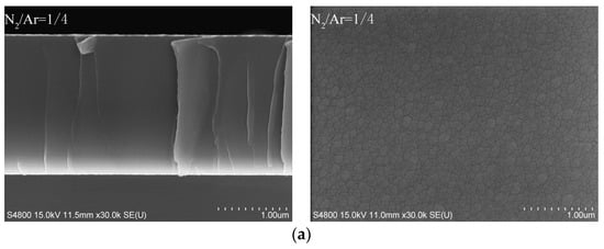 - Wang, T.; Zhang, G.; Ren, S.; Jiang, B. Effect of nitrogen flow rate on structure and properties of MoNx coatings deposited by facing target sputtering. J. Alloys Compd. 2017, 701, 1–8. [Google Scholar] [CrossRef]