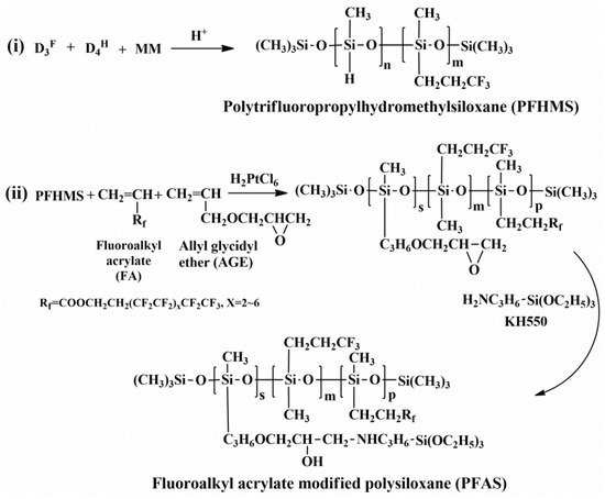 Synthetic process of the fluoroalkyl-acrylate-modified polysiloxane (PFAS).
