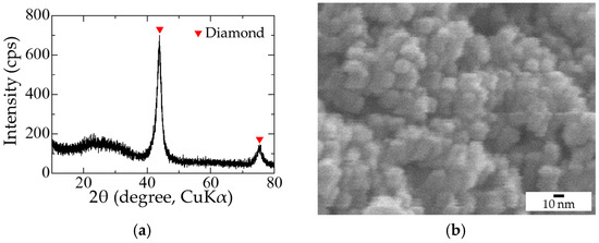 Characterization of initial nanodiamonds (NDs): (a) X-ray diffraction; (b) scanning electron microscope.