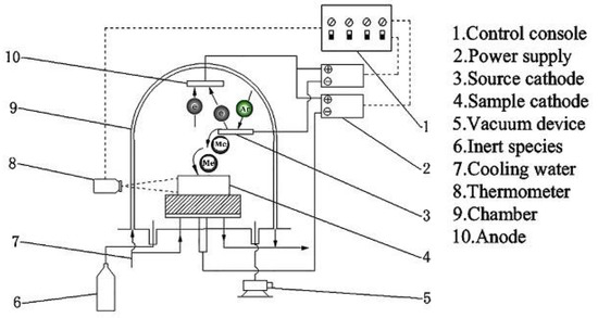 Traditional methods of preparing alloy coatings include procedures such as magnetron sputtering and ion implantation [10,11]. Magnetron sputtering provides high-density and smooth coatings. However, film hardness and the adhesion strength between the film and the substrate are both poor [12,13,14]. Ion implantation provides better purity of the doped ions, and the doping concentration is not limited by the solid state solubility. Additionally, the concentration and depth distribution of the implanted ions are accurate and controllable. However, ion implantation layers are typically too thin and, thus, have short life span. In addition, an ion-beam deposited coating might not be homogeneously distributed on parts with complex shapes [15,16].