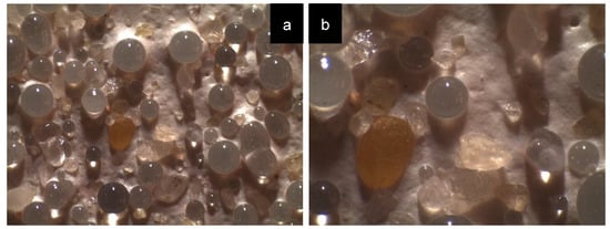 We used four different types of glass microbeads, with different grading and surface treatment: (i) Echostar 5 (125–710 µm); (ii) Echostar 20 (1180–125 µm); (iii) Duolux 125 H1 (425–850 µm); and (iv) Ultralux (600–850 µm). Technical information provided by their manufacturers is shown from