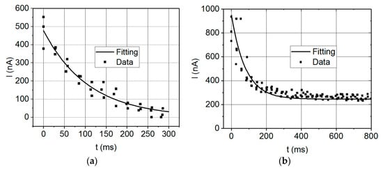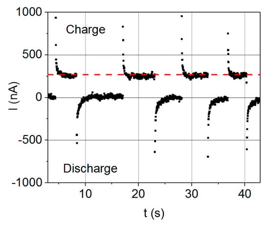 Nevertheless, the capacitance values derived from our electrostatic supercapacitor prototype are not as high as expected. The values obtained are coherent with the performed analysis, as both the dynamic and the static procedures yield values of the same order of magnitude (nF). However, they are far from the expected capacitance values in the μF range theoretically predicted for these kind of devices, so certain aspects of the manufacture of the supercapacitor devices should be further reconsidered. A feasible explanation on the discrepancies between the expected values of capacities and the experimentally measured ones is that the AZO layer is not properly fulfilling its function as electrode material, for either of two reasons. The first one is that the contact to the AZO layer with silver paint would not be appropriate and thus there is no electron transfer between the AZO layer and the conductive silver paint. The second reason would be that the AZO layer itself is a semiconducting material, and hence it is not able to efficiently conduct the electrical current along the channels of the pores. In addition, the design of the electrical connections of the device becomes critical, because current leakages and short circuits between the electrodes need to be avoided. For example, leakage currents may be decreased in the case of triple layer capacitors, whether or not it can be guaranteed that the electrodes are completely isolated to achieve the most desirable device performance.