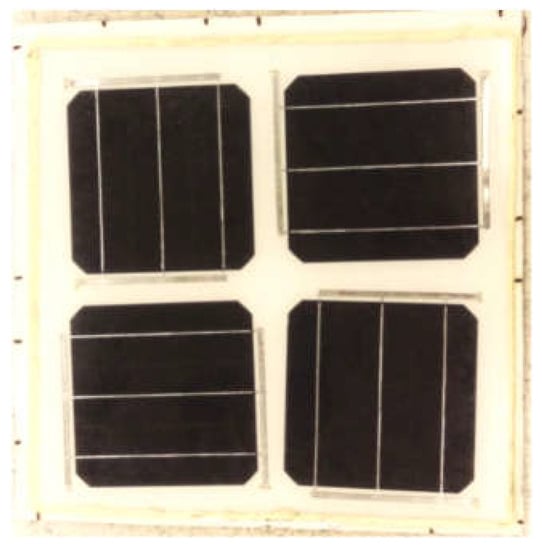 - Four solar cells were laminated in one module but disconnected from each other as shown in Figure 3.
