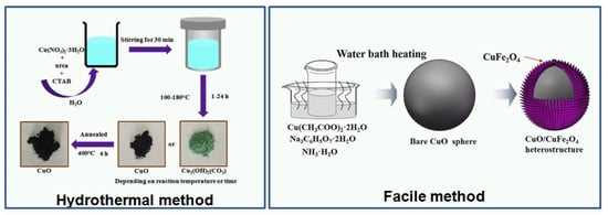 - Grigore, M.E.; Biscu, E.R.; Holban, A.M.; Gestal, M.C.; Grumezescu, A.M. Methods of Synthesis, Properties and Biomedical Applications of CuO Nanoparticles. Pharmaceuticals 2016, 9, 75. [Google Scholar] [CrossRef] [PubMed]