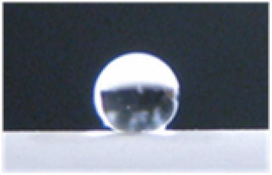 The static-evaluation method describes the hydrophobicity of a coating, where there is no external force acting on the coating: F = 0. A supercooled-water droplet can be considered as stationary on the coating surface. In this case, the contact angle at both edges of the droplet is the same and can be measured as a function of the work needed to remove the droplet, W, and the surface tension , shown in Equation (4). The predicted measured contact angle, , is shown in Equation (5) [] where W is the work of adhesion to the surface, and is the area of interaction between the fluid and the solid surface.