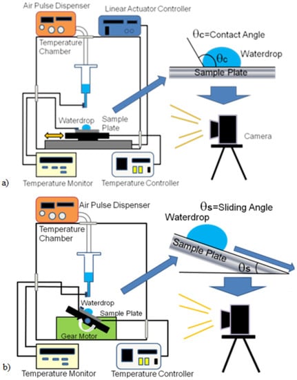 - Morita, K.; Sakaue, H. Characterization method of hydrophobic anti-icing coatings. Rev. Sci. Instrum. 2015, 86, 115108. [Google Scholar] [CrossRef] [PubMed]