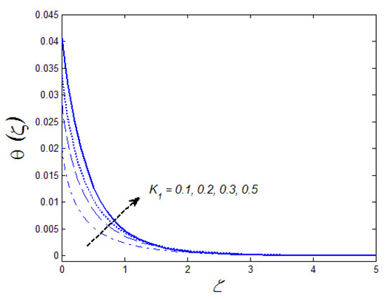 - The Nusselt number declined with increasing values of K1 and Rd.