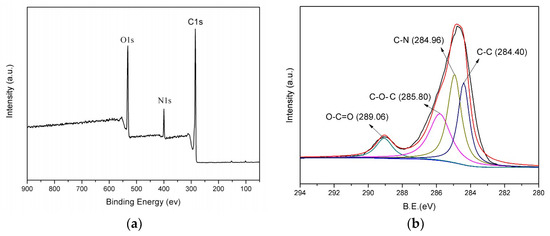 (a) The X-ray photoelectron spectroscopy (XPS) spectra of FCMSs; (b) The C1s spectra of FCMSs.