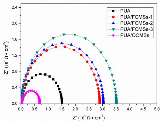 Nyquist plots of UV-curable polyurethane composite coatings.