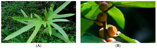 - Wan, C.P.; Chen, C.Y.; Li, M.X.; Yang, Y.X.; Chen, M.; Chen, J.Y. Chemical constituents and antifungal activity of Ficus hirta Vahl. fruits. Plants 2017, 6, 44. [Google Scholar] [CrossRef]