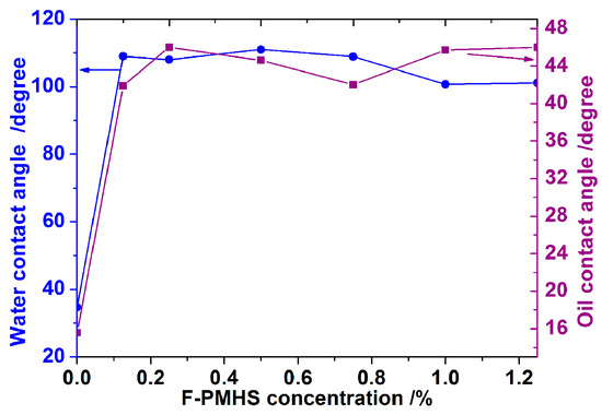 Effect of F-PMHS content on the water and oil contact angles of ARCs.