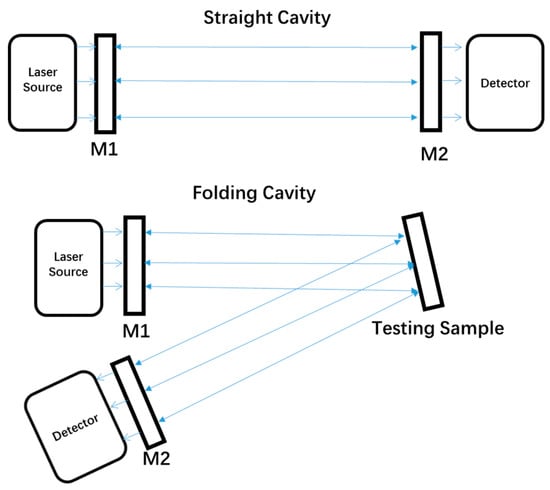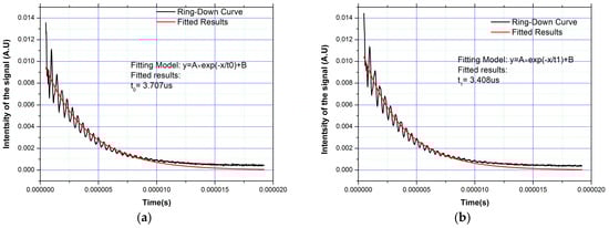 where L is the length of the cavity (1 m in our study) and C is the velocity of light. t0 and t1 the decay time of the ring-down signal in the straight cavity and folding cavity, respectively, which can be obtained by fitting the ring-down signal to the equation: