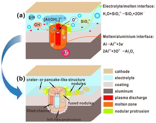 - Zhu, L.; Guo, Z.; Zhang, Y.; Li, Z.; Sui, M. A mechanism for the growth of a plasma electrolytic oxide coating on Al. Electrochim. Acta 2016, 208, 296–303. [Google Scholar] [CrossRef]