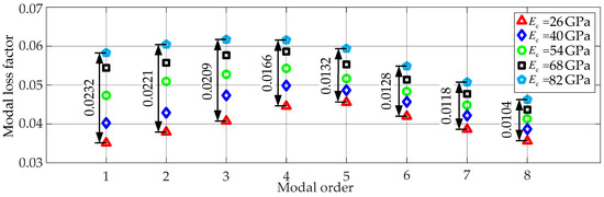 The modal loss factor of the composite shell corresponding to different elastic modulus of hard coating.