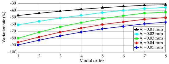 The variation rate of resonant response of the composite shell corresponding to different thicknesses of hard coating.