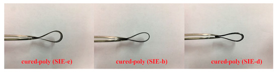 Thin film photographs for cured-poly (SIE-e), cured-poly (SIE-b), and cured-poly (SIE-d).