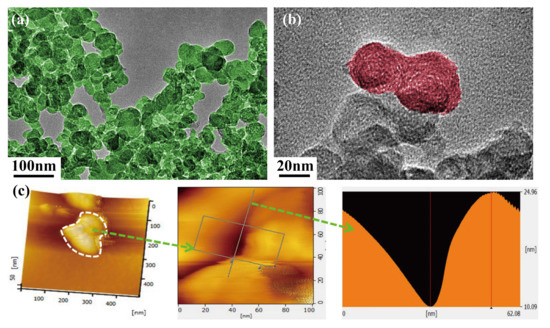 High-resolution transmission electron microscopy (HR-TEM) (a,b) and AFM images of diesel soot (c).