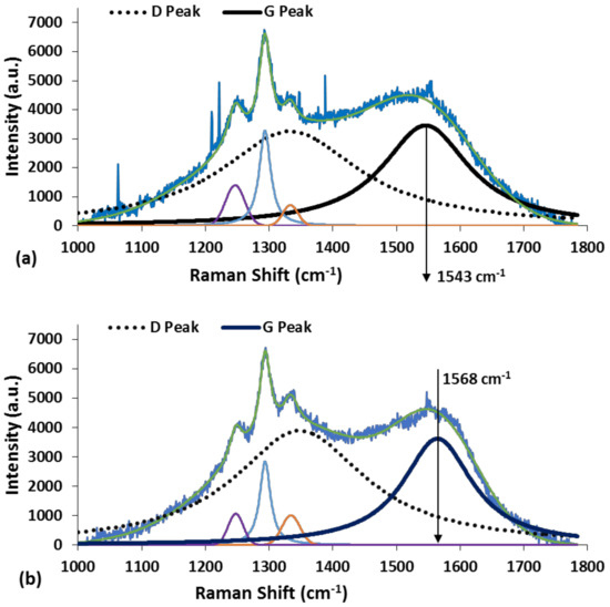 - Tamor, M.A.; Vassel, W.C. Raman “fingerprinting” of amorphous carbon films. J. Appl. Phys. 1994, 76, 3823–3830. [Google Scholar] [CrossRef]