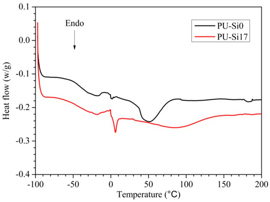Differential scanning calorimetry (DSC) curves of PU-Si0 and PU-Si17.