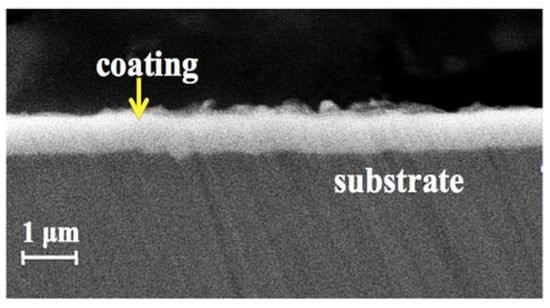 The crystallographic coatings structures were measured with X-ray diffraction (XRD, X’Pert PRO, PANalytical, Almelo, Netherlands, Cu-Kα, V = 40 kV, I = 20 mA, λ = 1.548 Å). The surface morphologies and cross sections of the specimens were analyzed by scanning electron microscopy (SEM, EVO MA15, Zeiss, Oberkochen, Germany). The chemical compositions of the composite coatings were analyzed with energy dispersive spectrometry (EDS, X-MaxN, Oxford Instruments, Oxford, UK). Glow discharge optical emission spectroscopy (GDOES, GDA 750HR, Spectruma Analytik Gmbh, Hof, Germany) was conducted for the analysis of the composite coatings using argon as the working plasma gas.