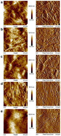 - Faria-Tischer, P.C.S.; Sierakowski, M.R.; Westfahl, H., Jr.; Tischer, C.A. Nanostructural reorganization of bacterial cellulose by ultrasonic treatment. Biomacromolecules 2010, 11, 1217–1224. [Google Scholar] [CrossRef] [PubMed]