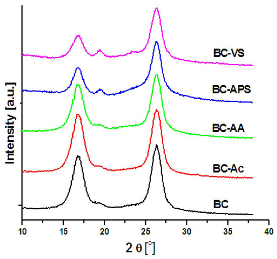 - Panaitescu, D.M.; Frone, A.N.; Chiulan, I.; Casarica, A.; Nicolae, C.A.; Ghiurea, M.; Trusca, R.; Damian, C.M. Structural and morphological characterization of bacterial cellulose nano-reinforcements prepared by mechanical route. Mater. Des. 2016, 110, 790–801. [Google Scholar] [CrossRef]
