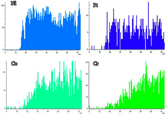 Nowadays, many researchers try to add other elements into the Pt modified aluminide coating to take advantage of the synergistic effects of multiple alloying elements in order to further enhance the comprehensive properties of the coating. Zhou et al. [7] prepared a Pt/Dy co-doped aluminide coating and found that the coupled effects of Pt/Dy co-doping led to a lower oxidation rate, less scale rumpling, and improved scale adherence compared to the single Pt or Dy doping. Some other researchers revealed that the addition of Hf into a single-phase Pt modified aluminide coating could lower the oxidation rate and decrease the oxide scale rumpling tendency, as Hf doped in the β-(Ni, Pt)Al coating could delay the transitional oxidation period from metastable alumina to a stable one and postpone the phase degradation from β-NiAl to γ-Ni/γ’-Ni3Al [8]. Other beneficial elements such as Ru, Zr, etc. applied to the Pt modified aluminide coating have also been studied, and it is reported that the multi-element doped coatings possessed a better resistance to rumpling than the single Pt modified aluminide coating [9,10,11].