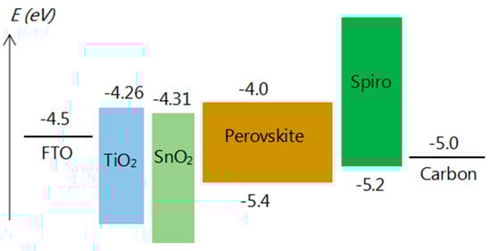 Energy bandgap diagram for TiO2/SnO2 based perovskite solar cells.